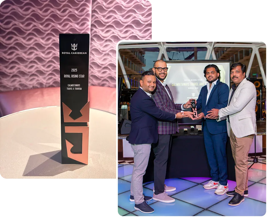 CalmGetaways has been honoured by Royal Caribbean with the Royal Rising Star Award — a testament to our dedication to making cruise travel simple, exciting, and accessible across the UAE and GCC. This recognition reflects our true spirit: expert guidance, genuine care, and unforgettable journeys at sea.